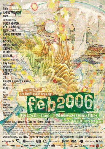 The organiser of feb. Since 1996 Ikuho has managed many parties and events, and has DJed all over the place, while simultaneously wondering around the world in his devotion to dance music. He has been organising feb since creating it in 2001. While cramming in many outdoor festivals, he has built up his reliability and experience, and amazes his fans with his wonderful sense of balance. He is currently putting together the unmissable Progressive Party in the Tokai area. As well as co-starring with Ticon, Atmos and Antix, he has fresh memories of introducing Chris Micali and Andre Absolute to Japan. Since 2002 he has also been broadening his horizons with the live unit Toslink. ----------------------------------------------------------------------