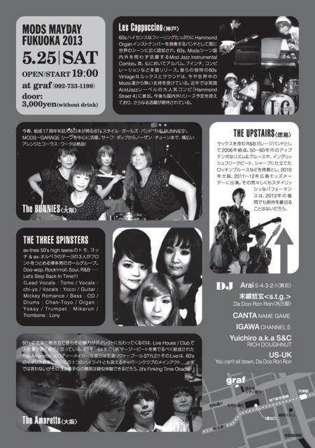 DJ: Arai(5-4-3-2-1 / 東京) 末續哲玄<s.t.g.>(Da Doo Ron Ron / 名古屋) CANTA(NAME GAME) IGAWA(CHANNEL 5) Yuichiro a.k.a S&C(RICH DOUGHNUT) US-UK(You can't sit down 、Da Doo Ron Ron )
