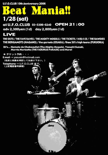 ★LIVE!★ THE FAVE RAVES THE OUTS THE TICKETS THE MIGHTY MOGULS THE BERGAMOTS (From NAGANO) 96粒の泪 the garnets (From OSAKA) thee 50's high teens (From FUKUOKA) THE BAWDIES