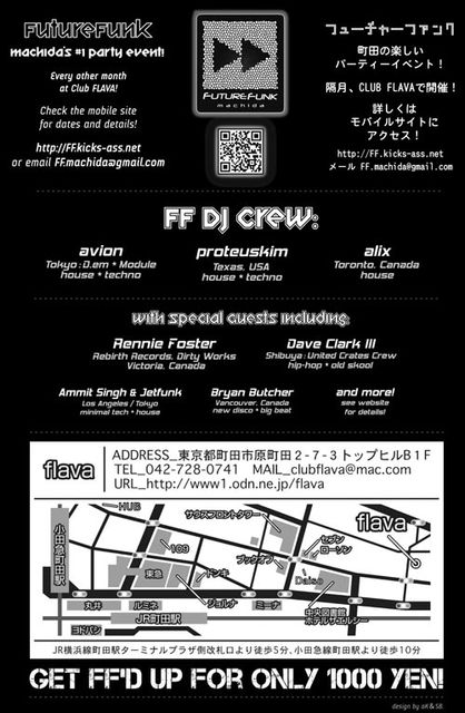 FUTUREFUNK Machida is back!! Now even bigger & better than ever, at a new venue Club FLAVA in Machida!! (Yes, it's a real club!) Don't miss the madness on FRIDAY, OCTOBER 8, cuz it's gonna be the biggest & best one yet!!