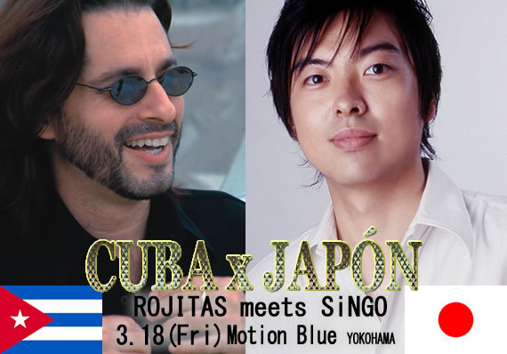 「ROJITAS meets SiNGO Special Latin Music Live」 キューバンサルサ界の"黄金の声"、Rojitasと、 若き鬼才ラテンピアニストSiNGOの奇跡のコラボレーション! 精鋭オルケスタと共にダンサブルで爽快なキューバン・グルーヴが 炸裂する! 衝撃のサルサLIVE!!