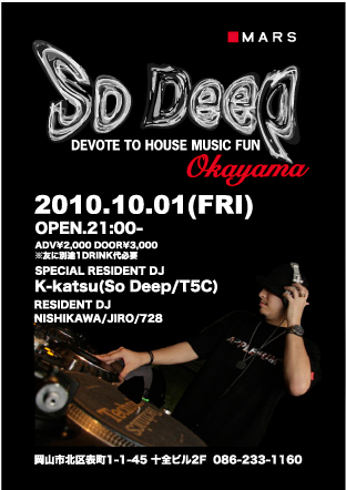 大阪を代表するDJ Yoku (A Hundred Birds)が立ち上げた老舗Eventである"Every Wednesday Night"@Flattをクローズまで約3年半"So Deep"DJ兼Organizer"として受け継ぎ毎週水曜日という帯の大切さを大いに学ぶ。*Club 香音に場所を移し開催。現クローズの為、休止中。