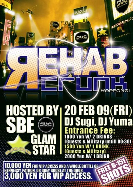 1000円 with 2 Drinks (SBE Guests & Military ID Holders/ 12時半まで) 1500円 with 1 Drink (SBE Guests & Military ID Holders/ 12時半以降) 2000円 with 1 Drink (Regular Price)