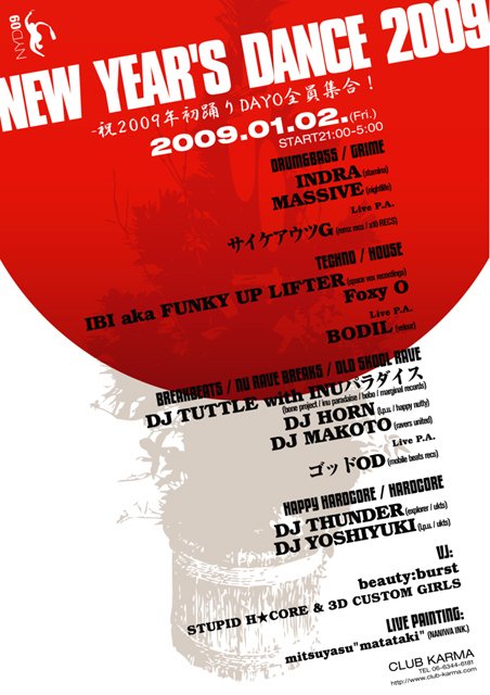 2009年1月2日(金) 21:00 - 5:00 @CLUB KARMA, OSAKA