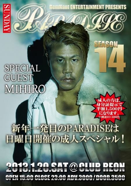 新年一発目のPARADISEは日曜日に開催いたします!!