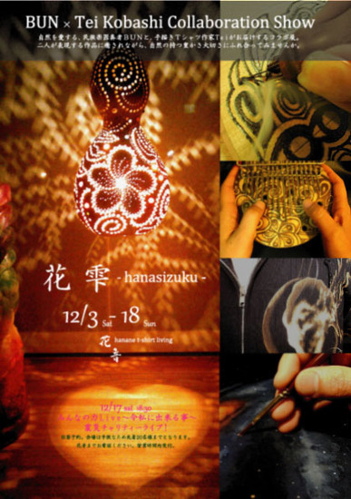 ============================================================= BUN × Tei Kobashi Collaboration Show @ 大阪 12/3 sat -18 sun 花雫 - hanasizuku - 手描きTシャツ・カリンバ・ひょうたんライトの作品展 =============================================================