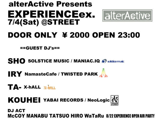 開催終了7/4 [sat] @STREET .alterActive presents .「EXPERIENCE」ex.