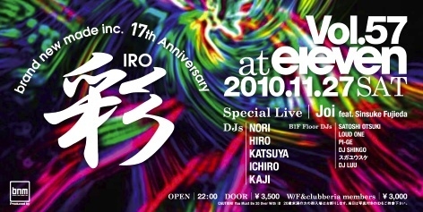 【brand new made inc. 17th ANNIVERSARY 彩-IRO- Vol.57】 @西麻布eleven 2010.11.27 SAT