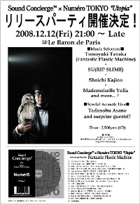 12/12(fri) Sound Concierge X Numero TOKYO "Utopia" release party Guest Selector:Tomoyuki Tanaka(FPM),Shoichi Kajino,SU(RIPSLIME),Madomoise Yulia, Guest Live:Tadanobu Asano Open 21:00