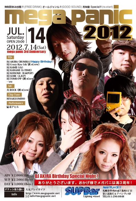 mega panic 3rd Anniversary & DJ AKIRA Birthday 本日20:00開催 !!