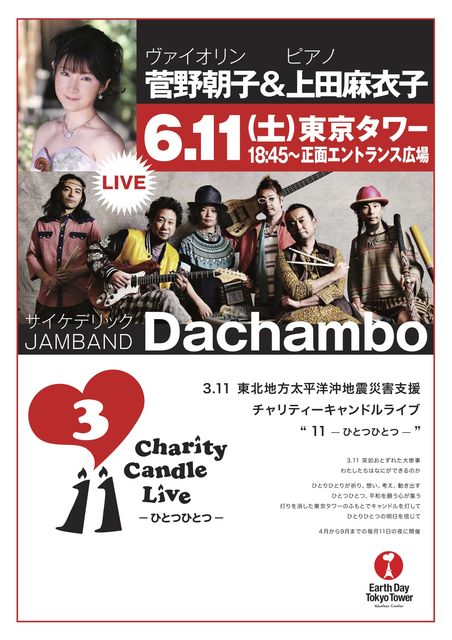 日本が宇宙に誇るサイケデリックJAMBAND、もしくは快楽探求楽団。ツインドラムにディジュリドゥー、極太ベース、爆音ギター、そしてデジタル音からなる、ジャム、トランス、ラテン、ファンク、サイケ、オーガニック、民族音楽といったジャンルの枠をひょいひょいと変幻自在に飛び越えるPEACE&SMILEに溢れた彼らのライブは、自分達とその場に息づく空気、居合わせたお客さんとのバイブレーションの交換から生まれ、常に変化しつづける形容のしがたい、することの出来ない音を産み続けてゆく。それは「人が踊る」ことへの初期衝動を覚醒させる中毒性をもったサウンドであり、現世と彼岸の境界線を遥かに越えてビヨンド・ビリーヴな踊りのサークルから生まれるカオスでもある。そんなDACHAMBOの世界観にグイっと惹き付けられた老若男女によって、草の根的に”DACHAMBO村”日々拡大中。gravity freeデザインのド派手なバイオディーゼルBUSに乗り全国のFESやPARYに駆けつけてはシーンを騒がし、ついには『朝霧JAM’08』ではオオトリに抜擢、2009~2010年『FUJIROCK FESTIVAL09』/『RISING SUN ROCK FESTIVAL09』/『SunSetLive09,10』『SUMMERSONIC2010』『SUNSETLIVE2010』等のビッグ・フェスを総ナメにしたのも記憶に新しいところ。2011年には結成10周年を迎え『Project A10TION』として数々の企画を進行中!?! さらに勢いに乗るDachamboの活動から目が離せない!! Official Website:http://dachambo.com Myspace:http://www.myspace.com/dachambo