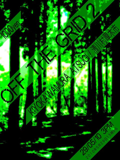・orga (vibrant recordings) ・Hardliner (Musou Production) ・nessILL (opuesto / submeditate) ・seap (opuesto / submeditate) ・meno (ilinx) ・scriptones + special guest (intervall-audio) ・meme ・marx (freeta corrective) ・skab/t (freeta corrective) ・andy Place:Secluded mountain area outside of Atsugi Google Map: http://bit.ly/offthegrid2/ Cost:¥1,000(We ask this small contribution to the costs of running the event) Organizers:OFF THE GRID EVENTS