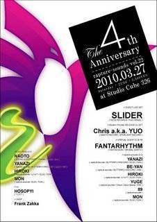 2004年よりDJ活動開始。その独自の感性からなる選曲は素晴らしく、ギミックテクニックはRAPTUREメンバーも絶賛、いくつものARTISTと共演、DJの師匠でもあるYANAZIの元、修行し現在はFULL ON ,PROGRESIVE,ELECTROにまで幅を広げている、どの時間もコンスタントにこなす彼の安定したミックスは見るものを魅了し、特にピークタイムのダイナミックなパフォーマンスは見てるものを自然と笑顔に変える力も秘めている。2008年よりrapture-sounds加入、rapture期待の新星の未知なるパワーを体感して欲しい…