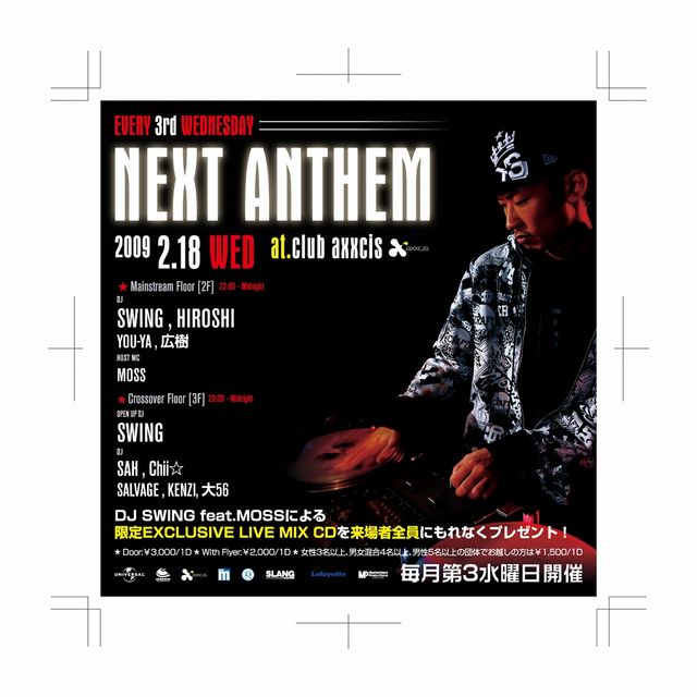 DJ SWING待望の都内初にして唯一のレギュラーパーティー!! NEXT ANTHEM@club axxcis!! 今月は2/18(水)です。