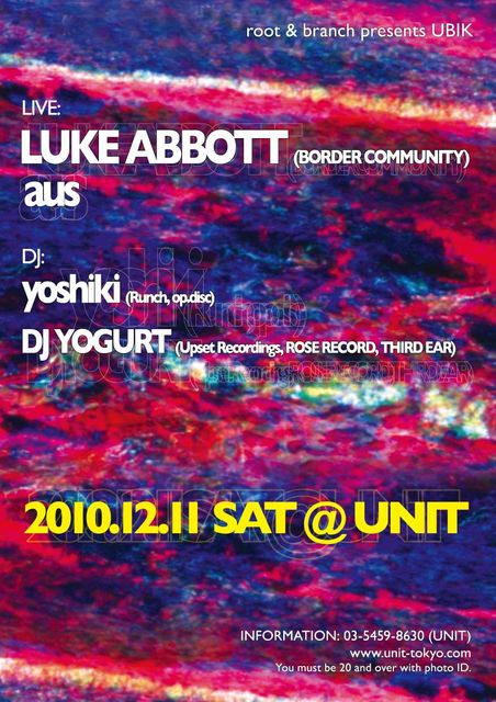 LIVE: LUKE ABBOTT (BORDER COMMUNITY), aus DJ: yoshiki (Runch, op.disc), DJ YOGURT (Upset Recordings, ROSE RECORD, THIRD EAR)