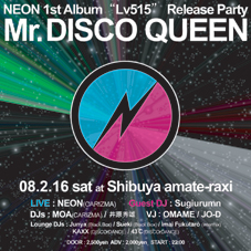 デビューアルバム"Lv515"(2008年2月6日発売)をリリースする新世代テクノ・ロック・バンドNEON(ネオン)!!発売より10日後の2月16日、amate-raxiにてアルバムリリースパーティー「Mr. Disco Queen」を開催。ギター、シャウト、フィルター、スクラッチ……。熱い要素を盛り沢山に詰め込んだアグレッシヴなライブは必見!!また、当日はスペシャルゲストDJとしてSugiurumnが登場、リリース記念をさらに盛り上げます!!テクノ・ロック・ディスコ・ハウスを放出する新たなるパワーを体感すべし!!