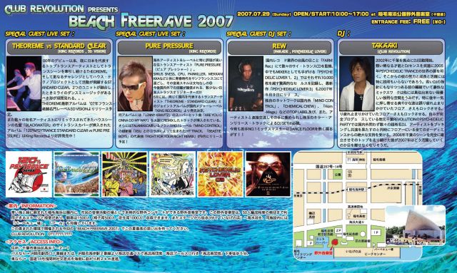 開催終了2007.07.29(Sunday) BEACH FREE RAVE【Club REVOLUTION】 at 稲毛海浜公園野外音楽堂