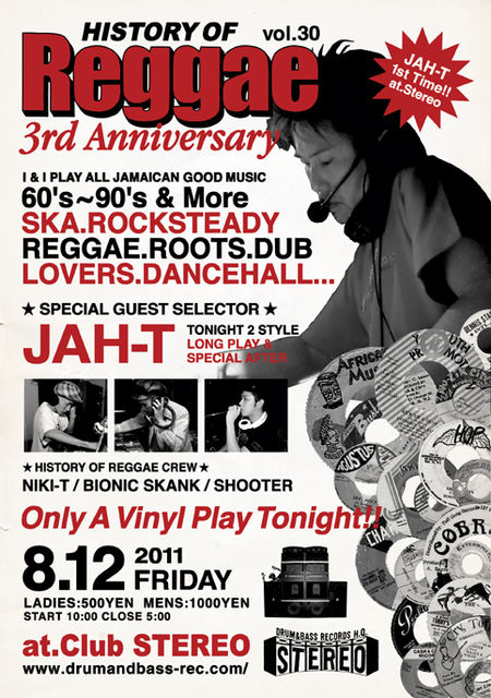 開催終了◆8月12日(金)ヒスレゲ3周年!!! ゲストはJAH-T!!! at.STEREO