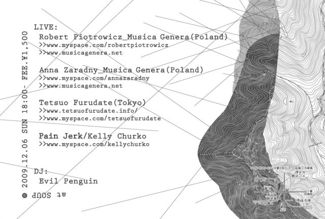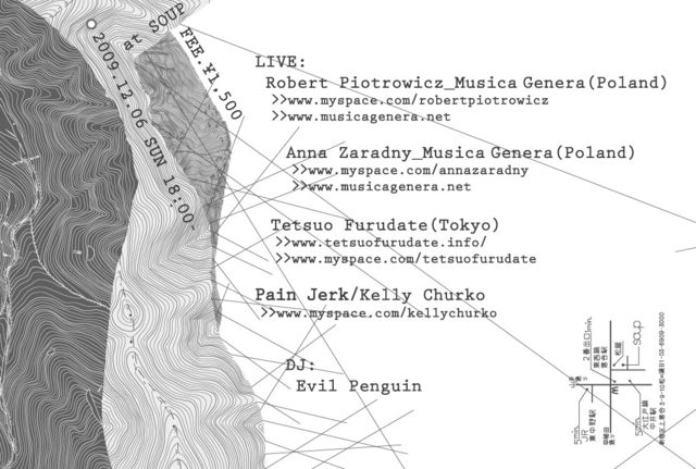 ポーランドのノイズとフリー・インプロヴィゼイションの境界線が交わる分野を牽引するRobert Piotrowicz。彼の地で行われるMusica Generaフェスティヴァル(ヨーロッパでもっとも支持されるエクスペリメンタル・ミュージック・フェスティヴァルの一つ)及びそのレーベル部門を運営し、過去10年に渡って活動的な実験主義者として知られてきた。エレクトリック・ギターの演奏をバックグラウンドに持ち、その後アナログ・シンセに転向、さらに現在は、シンセシスによるエレクトロニクスの膨大なポテンシャルを探求し、またそれと同時に、通常の意味合いとは異なる観点からギター等の楽器をサウンド・ソースとして用いることによって、伝統的な楽器とエレクトロニクスを配合したエレクトロアコースティックのスタイルへと発展を遂げている。もともと90年代には自身のノイズ・ロック・バンドStuckoceilingを率いて活動しており、98年にAnna Zaradnyがバンドへ加入することにより、よりエクスペリメンタルで、即興演奏的な方法論へシフトしていった。2000年にはPiotrowiczがフリー・インプロヴィゼイションの巨頭John ButcherやTony Buckとのコラボレーションと始め、それと同じくして、PiotrowiczとZaradnyは共同でフェスティヴァル/レーベルのMusica Generaを運営。以降Musica Generaは二人の強力な活動母体となっている。 2006年にはPiotrowicz初となるソロ作品『Rurokura and the Final Warn』をDaniel MencheやXavier Charlesなどを擁するemd.pl/から発表。また、作品にはZaradny及びBurkhard Stanglとのコラボレート・アルバム『Stuckonceiling; Can't Illumination』や、PolycephalとPhase!からリリースしたCDR作品などがあり、さらにフィルムメーカー/ミュージシャンのMartin Klappeとの活動、映画のサウンドトラック制作等、映像とのコラボレートも意欲的に行う。これまでに多数の即興演奏家とのコラボレートを行っており、特にJohn Butcher、Kevin Drumm、Xavier Charles、Jerome Noetinger、Zbigniew Karkowskiとの演奏はよく知られる。その他大友良英、ErikM, Martin Siewert(Trapist)、Dieb 13、Werner Dafeldecker、Lionel Marchetti、Nikos Veliotisと共演。Audio Art Festival、Jazz en Gatineite、Alt F4、The Strings of Difference Athens、SKIFF、Muzyka z Mozgu、In Between Chicago、Copenhagen Jazz Festival、Jazz in E.、Art Rhythmic Depot等、国際的なフェスティヴァルにも多数出演している。 今回の来日が東京では初となるポーランドのノイズ/フリー・インプロヴィゼイション・シーン体験となる。