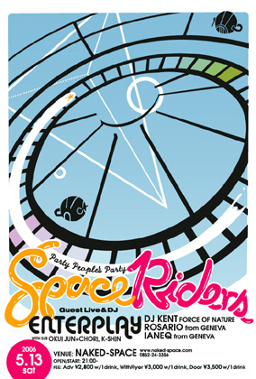 DATE: 2006.5.13 SAT 21:00OPEN/START VENUE: NAKED-SPACE( http://www.naked-space.com ) GUEST DJ&LIVE: ENTERPLAY ( DJ KENT [FORCE OF NATURE], ROSARIO from GENEVA, IANEQ from GENEVA ) http://forceofnature.jp/ WITH DJS: OKUIJUN + CHORI, K-SHIN FEE: ADV_2800YENw/1d, WITHFLYER_3000YENw/1d, DOOR_3500YENw/1d