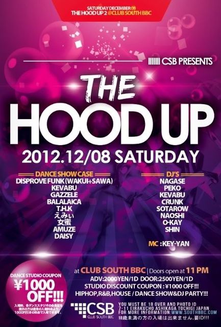 ▼Caution ・CLUB SOUTH BBCでは、18歳未満の方のご入場はお断りしております。 ご入場の際は顔写真付きID(免許証等)をご持参下さいませ。 ・再入場等、開催中の出入りはご遠慮させて頂いております。 ・飲食物の持ち込みはご遠慮下さい。