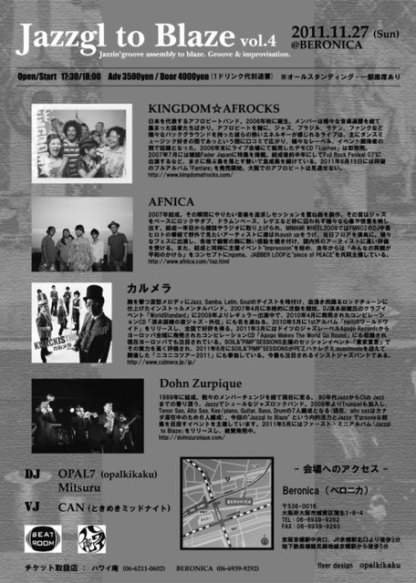 Jazzgl to Blaze vol.4 2011.11.27 (Sun)@BERONICA Open/Start:17:30/18:00 Adv 3500 yen / door 4000 yen (1ドリンク代別途要)