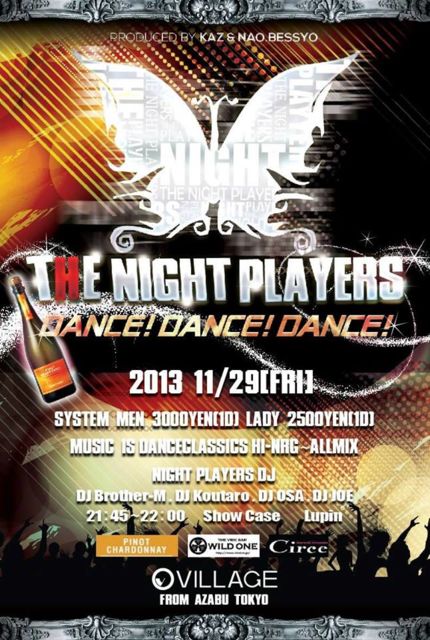 19:00〜23:30 DJ Brother-M、DJ Koutaro 、DJ OSA、DJ JOE、のGoodなTHE NIGHT PLAYERS DJ が熱いサウンドをCoolに新しい曲も織り交ぜて、DANCECLASSICS、HI-ENERGY、ROCK、ALL70'&80',HITS~をPLAY華やかに 盛り上げます。