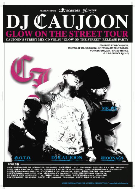 またラッパーとしての活動と並行し、現在、地元名古屋の老舗クラブ"LUSH THE UNDERGROUND"において毎週土曜に行われているBIGパーティー[CONTACT HIGH]では、全国トップクラスのDJ CAUJOONのHOSTとしても活躍中。更にソロPROJECTとしては、MR.OZ主催のBIGG MAC RECORDSから発売中のコンピレーション「junk $ ring」にソロ楽曲を収録。ポスト名古屋NEXT MANとしてもこれから目が離せないMCである。