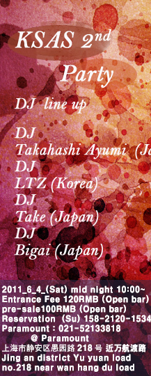 今学期は2011年6月4日に 静安寺 paramount(百乐门)でKSAS party 2を開催