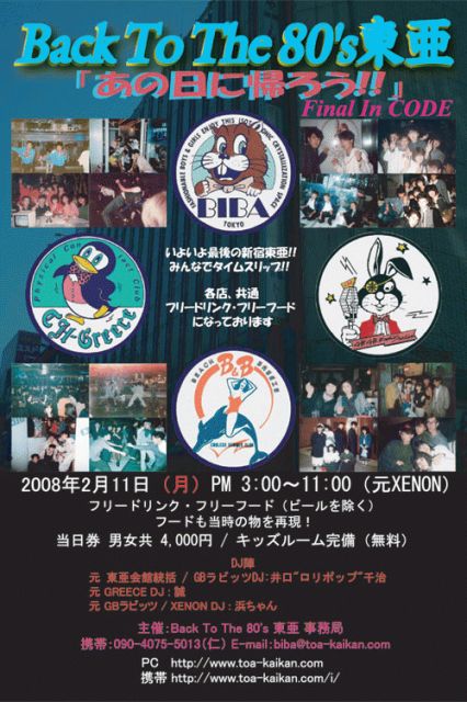 開催終了緊急告知【2/11(祝)@新宿】Back To The 80's 東亜 Final In CODE