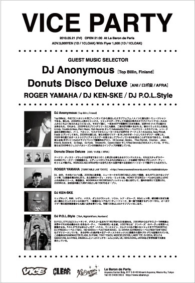 GUEST MUSIC SELECTORS: DJ Anonymous (Top Billin, Finland) ROGER YAMAHA (TTLT) DJ KEN-SKE DJ P.O.L.Style And more.. Le Baron Resident Music Selector Blue Rogan