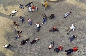 彼は屋外の場所を利用し、かつ偶然通った人や地元の人を巻き込んでのパフォーマンス、そして偶然出来上がるシュールな世界が大好きな人です。