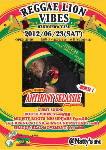 -ANTHONY SELASSIE- from JAMAICA 17歳でレゲエシンガーとしてレコーディングを始める。当時、Jimmy Cliffや Third Worldなどのビックアーティストが出入りしていたMusic Mountain Studioで、 7inchの初レコーディングを果たす。曲名はbusybody。この曲がヒットして ジャマイカで一躍名をあげる。後にSugar Minottの目にとまり、彼のサポートを受け Youth Promotionlabelから5曲の7inchをリリースする。 19歳でGarnet silkとのコンビネーションチューンYou see di girls demをレコーディング。 その頃からChannel One Recording studioで、エンジニア兼レゲエシンガーとして活動し始める。 その他、CocoteaのRoaring lion labelやBeres HammondのHarmony house labelなどからも 7inchをリリースしており、Louie Cultureとコンビで歌った曲、"Ya-Ho"はヒットした 名曲である。現在は、自身のLabel "St.Michael 777 music"を持ち、活動中。 ミックスダウンなどエンジニアの仕事もこなし、アルバムRising Aboveも発売している。 カナダ、アメリカ、ヨーロッパ、イギリスなどでステージを こなす実績もあり、ジャマイカで毎年開催されるビックショーRebel Salutelにも 2001年、2003年、今年2012年と出演している、注目のレゲエシンガー。