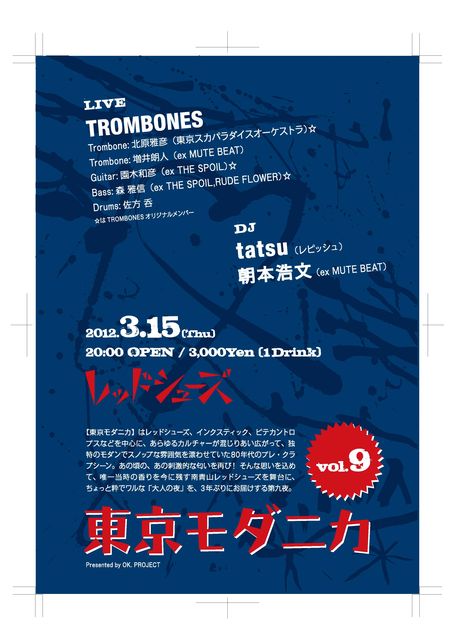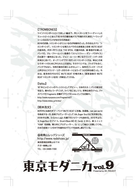 Presented by OK. PROJECT 【東京モダニカ】はレッドシューズ、インクスティック、ピテカントロプスなどを中心に、あらゆるカルチャーが混じりあい広がって、独特のモダンでスノッブな雰囲気を漂わせていた80年代のプレ・クラブシーン。あの頃の、あの刺激的な匂いを再び! そんな思いを込めて、唯一当時の香りを今に残す南青山レッドシューズを舞台に、ちょっと粋でワルな「大人の夜」を、3年ぶりにお届けする第九夜。