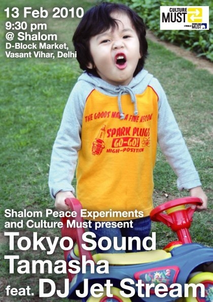On 13.02.10 at Shalom in Vasant Vihar you will have the possibility to witness the very latest of Japanese musical and performing traditions. DJ Jet Stream, one of the hottest artists in modern Japanese music, will set the floor on fire celebrating the Tokyo Sound Tamasha with the Delhi party crowd.