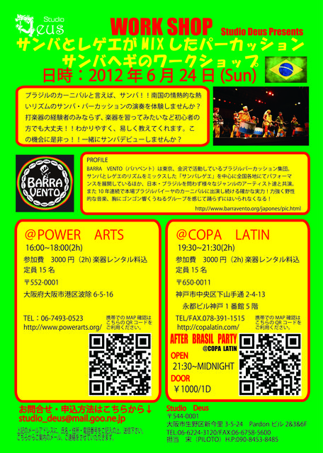 Studio Deus presents第2回目となるバハヴェントによるサンバヘギのワークショップを