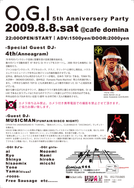 開催終了8/8(土)★O.G.I  5th Anniversary Party!!★Special Guest DJ  4th!!★