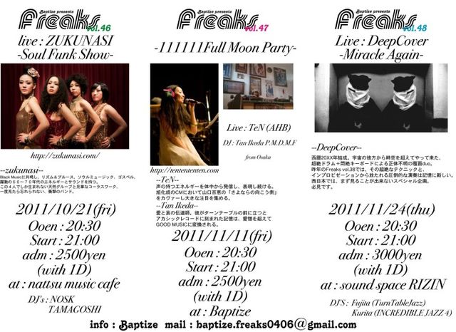 2006年07月 Fuji Rock Festival/ A Hundred Birds 2006年08月 Rising Sun Rock Festival/ A Hundred Birds 2006年10月 Camp in 朝霧JAM -It's a beautiful day-./ A Hundred Birds 2008年11月 Billboard Live Fukuoka/ TeN Solo Live 2010年09月 淡路島国生み神話芸術祭2010 2010年10月 西宮船坂ビエンナーレ2010 オープニングライブ。古巻 和芳氏の作品に参加 2010年11月 ONE PEACE LIVE 第2 回オーラの祭典。岡野弘幹氏(天空オーケストラ)のライブにコーラスとして参加 2010年12月 現代美術作家、田口行弘氏個展クロジングパーティGIFTにて田口氏とのアートライブセッション。