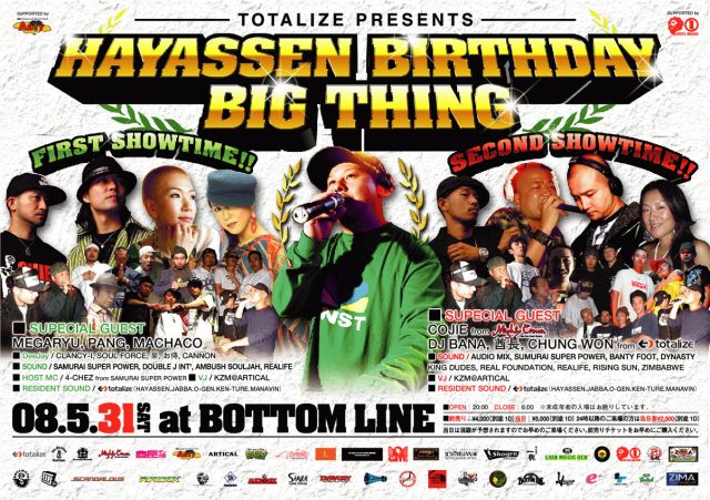 HAYASSEN BIRTHDAY BIG THINGの出演者が全て決まりました。 当日は前半と後半と2部構成で行います。前半はLIVEを中心に後半はSOUNDが中心になっています。