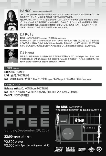 開催終了CARE FREE2009/9/20(日) 祝前日@NiNE