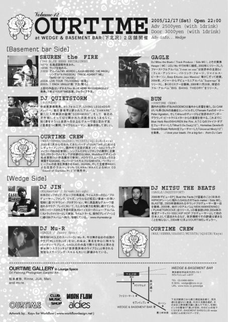 【WEDGE side】 DJ JIN (Rhymestar/breakthrough) DJ MITSU THE BEATS(GAGLE/JAZZYSPORT) DJ Mu-R ( GAGLE/Jazzy Sport ) OURTIME CREW