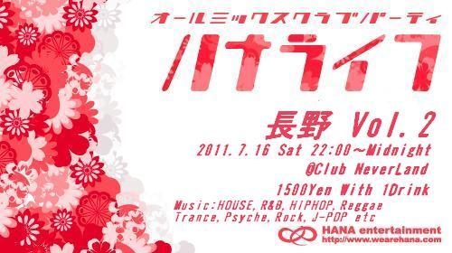 開催終了7/16(土)ハナライフ長野Vol.2@NeverLand