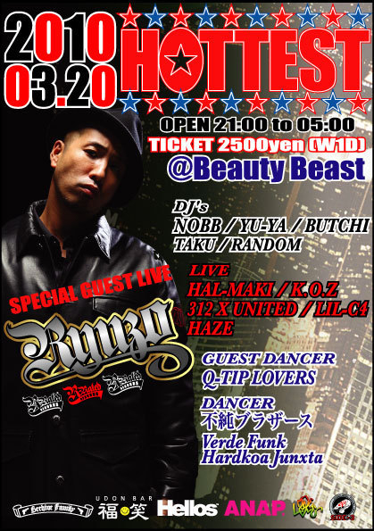 開催終了HOTTEST!! SPECIAL GUEST RYUZO!! &3連休1発目+DJ NOBBのMIX CDを皆様にホワイトデープレゼント!!