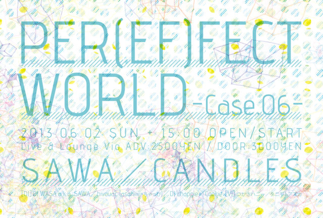 ◆What is Per(ef)fect world ? Per(ef)fect world = /Effect world = Perfect world ? ようこそ Per(ef)fect World へ! 日常にちょっとだけエフェクトをかけて遊びましょう! Per(ef)fect worldは、一般に渋谷系、ネオ渋谷系と呼ばれる音楽をベースに、 シンセポップ、ネオアコースティック、ギターポップ、テクノポップ、エレクトロポップ、 フューチャーポップ等、あらゆるポップミュージックをメインカテゴリーとしたパーティーです。 クラブのようなカフェのような不思議な空間で音楽に身をゆだねてみてはいかがですか? 合言葉は「ポップでキャッチーでスウィートでグルーヴィー!」