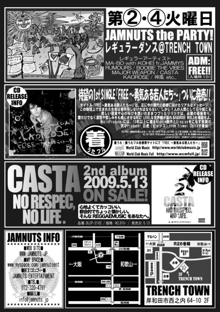 JAMNUTS the LIVE!! FREEDOM BLUES「MAJOR WEAPON」 Japanese Soldier「CASTA」 国境なきエンターテイナー「BRAND」 空に広がる歌声Singer「BOZE the MAGIC」 泉州のRAGGA侍「神風」 Real Bad Gal Style「KAOROSE」