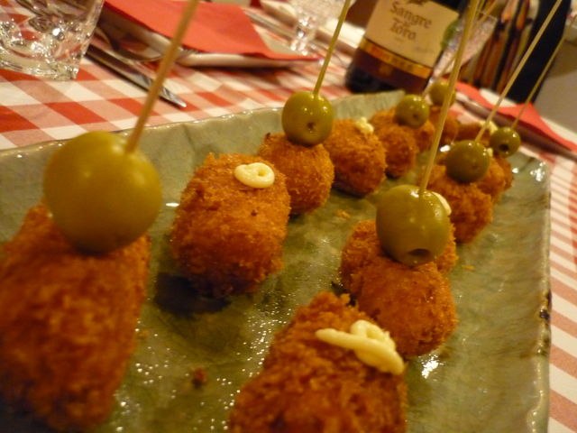 ハムとチーズのはさみ揚げ(ホットタパス ): Rollitos de Jamon y queso - Rolls of Ham and Cheese layered, breaded and fried (served hot)