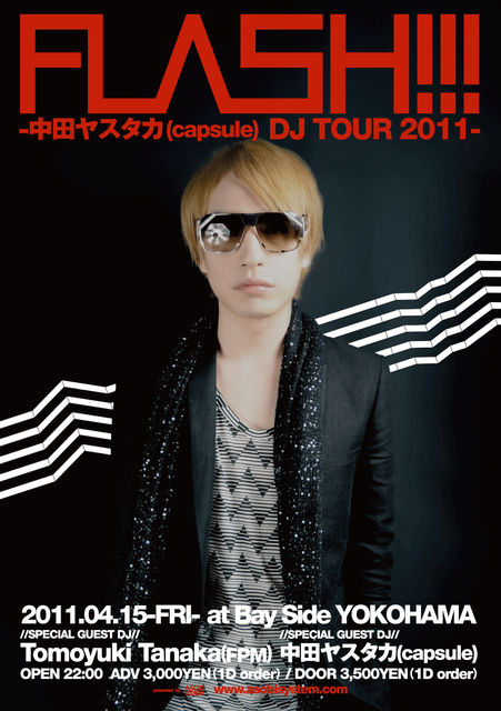 2011.06.17 FRI 22:00open ■FLASH!!!-中田ヤスタカ(capsule) "WORLD OF FANTASY" DJ TOUR 2011- AT:Bay Side Yokohama ADV 3,000yen(1D) /DOOR 3,000YEN ※みなとみらい線 元町中華街駅から会場まで乗った当日分のタクシーの領収書をエントランスで渡すとドリンクチケットプレゼント!!!