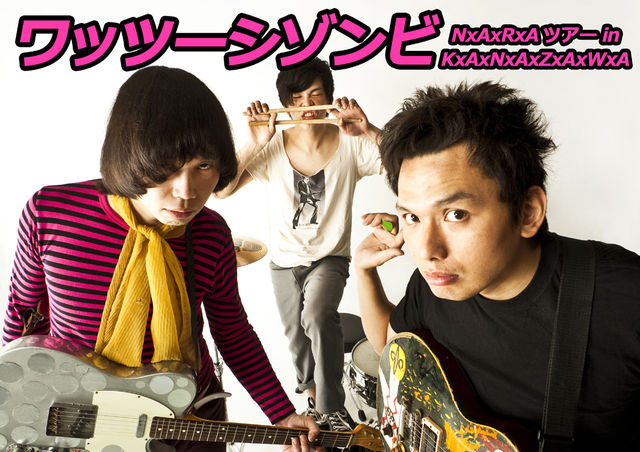 LIVE ワッツーシゾンビ 99年、谷村じゅげむ(Vo,G)、安里アンリ(Vo,G)を中心に邪馬台国(奈良)で活動開始。 01年に三宅メグル(Dr)がライブ中に乱入し、そのまま加入。 02年に自主制作アルバムを全国発売し活動の場を東京及び全国に広げる。 勢力的な活動を行い05 年キャプテントリップレコードから1st album『ブッダ マスク エクスペリエンス』リリース。 あふりらんぽ、オシリペンペンズなどとともに” 関西ゼロ世代” などと評され同年FUJI ROCK FESTIVAL'05のROOKIE A GO GO ステージに出演。初のアメリカツアーも行う。翌年にはふたたびアメリカツアー敢行。 08年2nd album『ブッダ マスク レボリューション』をキャプテントリップレコードからリリース。 秋にはフリーチベットチャリティーイベントを主催。 09年5月に曽我部恵一氏主宰のROSE RECORDS よりmini album『ZOMBIE FROM EARTH』をリリース。 同年9月には同じくROSE RECORDS よりalbum『WE ARE THE WORLD!!!』をリリース。 10年9月ドラムの三宅メグル脱退するも、即座にサポートドラム山本レボリューションを迎えあいかわらずやりまくり。 11年7月 ROSE RECORDS より新生ワッツーシゾンビのニューアルバム『NxAxRxA』をリリース。 http://www.watusizombie.com/