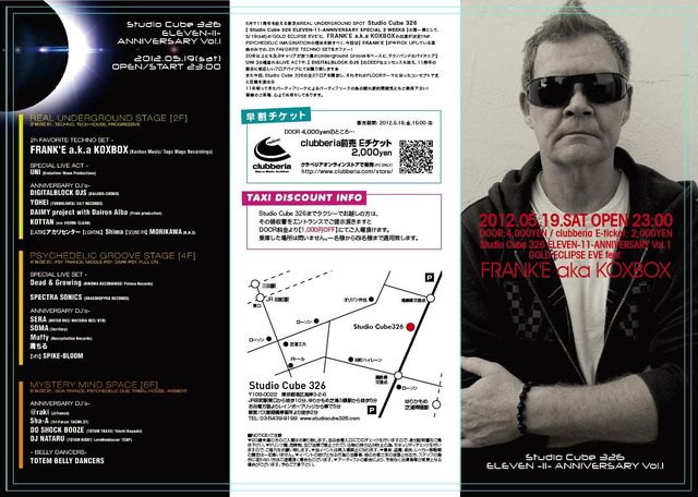Studio Cube 326 is proud to announce “GOLD ECLIPSE EVE” featuring FRANK'E a.k.a KOXBOX!!!