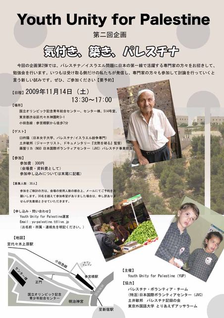 パレスチナ/イスラエルの問題を聞く講演会ではなく、自らも発信し参加者全員で意見を共有していく場として、Youth Unity for Palestine(YUP)は、7月末にパレスチナの伝統料理マクルーベを作り、料理を囲みながら話し合う機会を設けました。今回の企画第2弾では、パレスチナ/イスラエル問題に日本の第一線で活躍する専門家の方々をお招きして、学生を中心とした若い世代の企画で勉強会を行います。いつもは受け取る側だけの私たちが発信し、専門家の方々も参加して討論を行っていくと言う新しい試みです。ぜひ、ご参加ください【要予約】。
